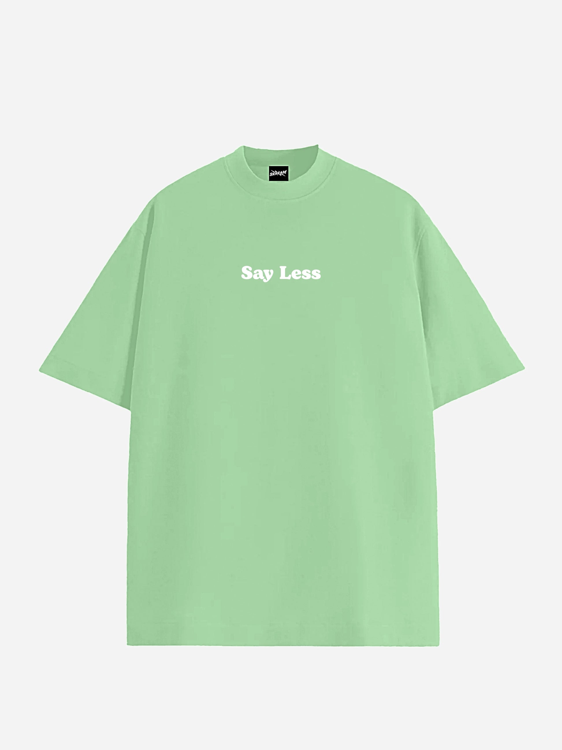 Finished in a sage green base with a clean white “Say Less” typographic print, this tee keeps the design minimal and the message sharp. The relaxed oversized unisex fit makes it ideal for everyday wear, layering, and elevated casual styling.