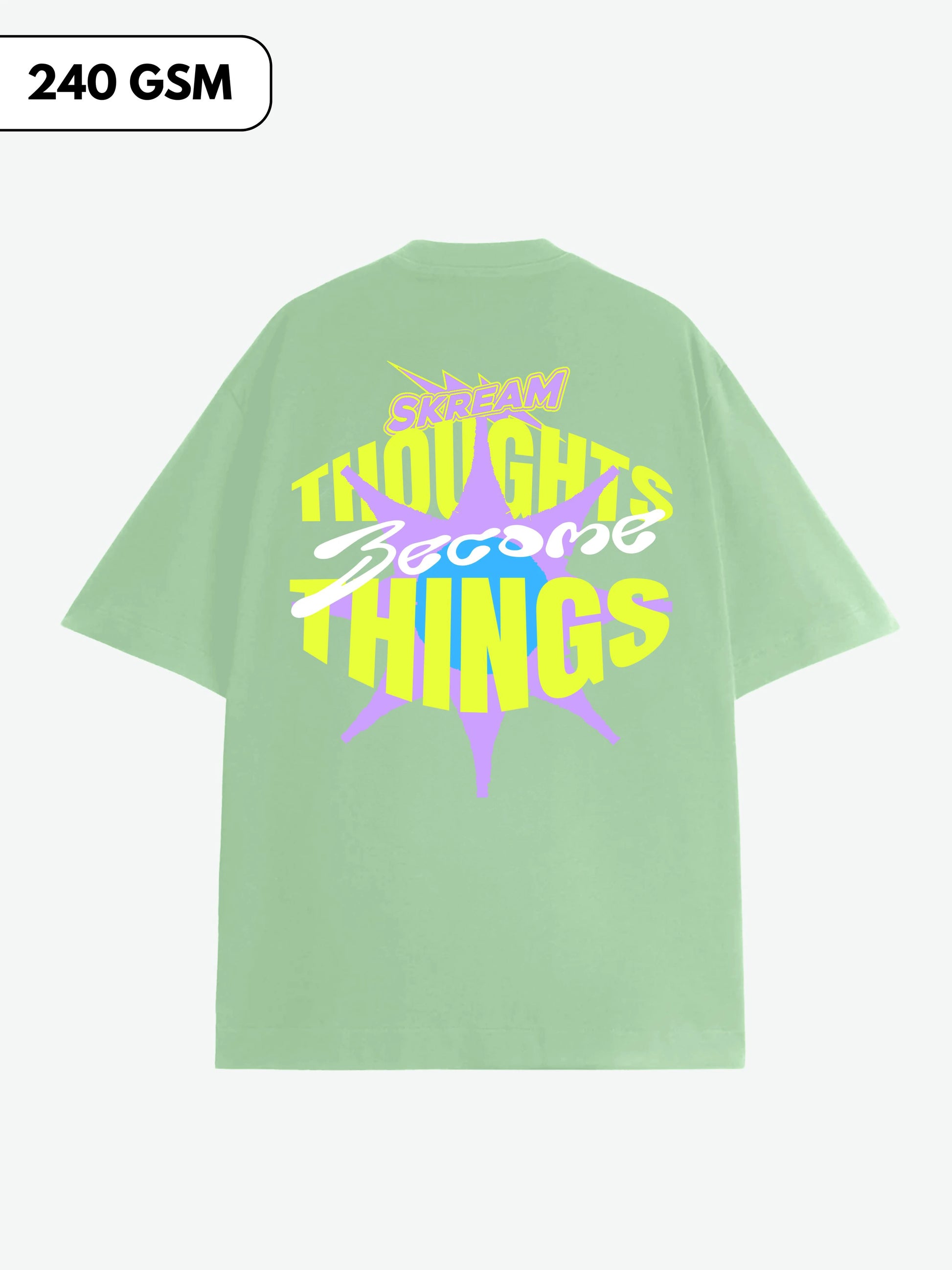 Featuring our signature ‘Thoughts Become Things’ print in aesthetic muted tones on both front and back, this tee speaks your vibe before you even say a word. It’s made for dreamers, doers, and everyone who lives with intention and dresses like they mean it.